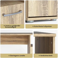 Mit den Maßen 110 x 52 x 73 cm lässt sich alles ordentlich verstauen. Das Fach kann für Bücher und Dekoration genutzt werden, der Schrank mit verstellbarem Regal auch für große Gegenstände, beispielsweise den Computer.