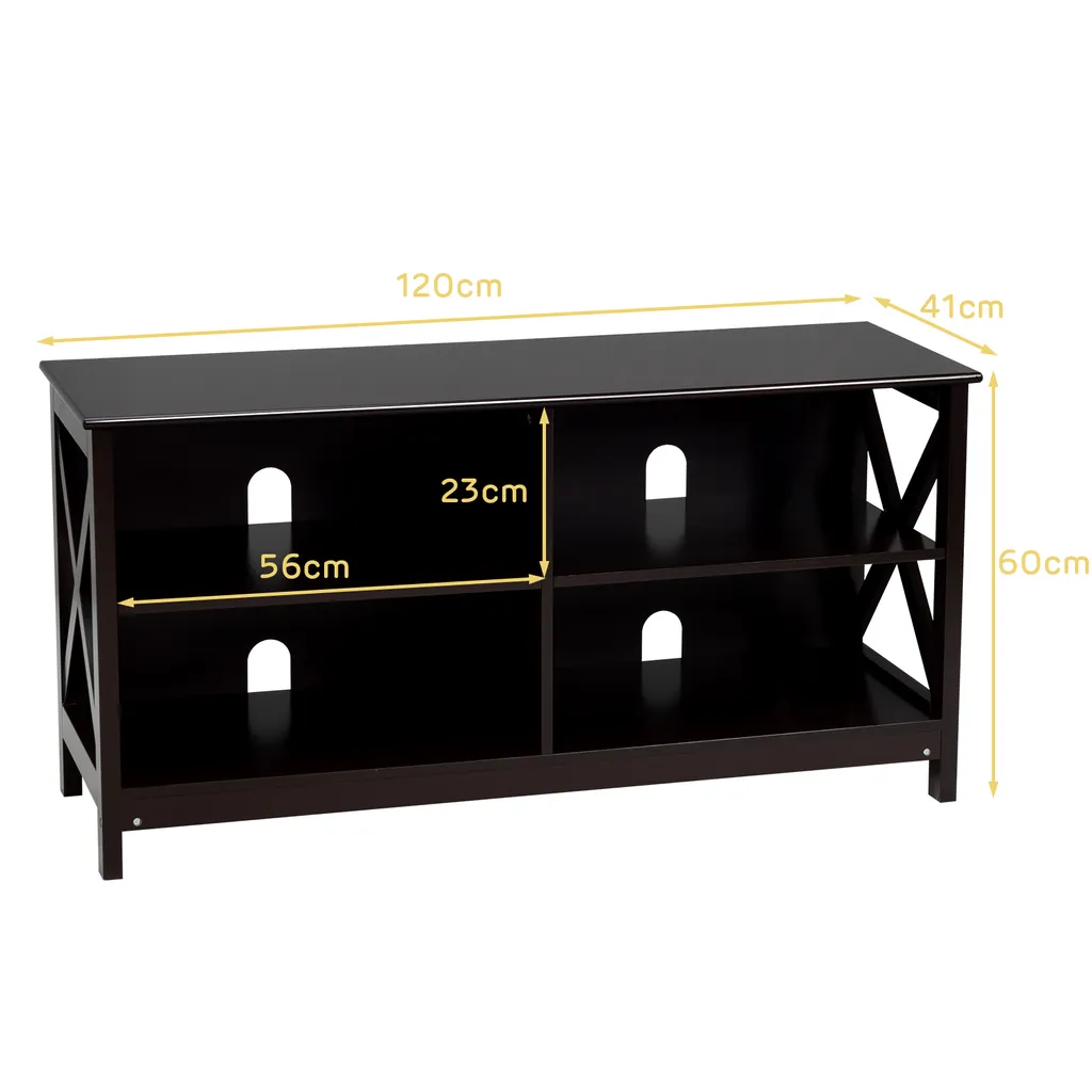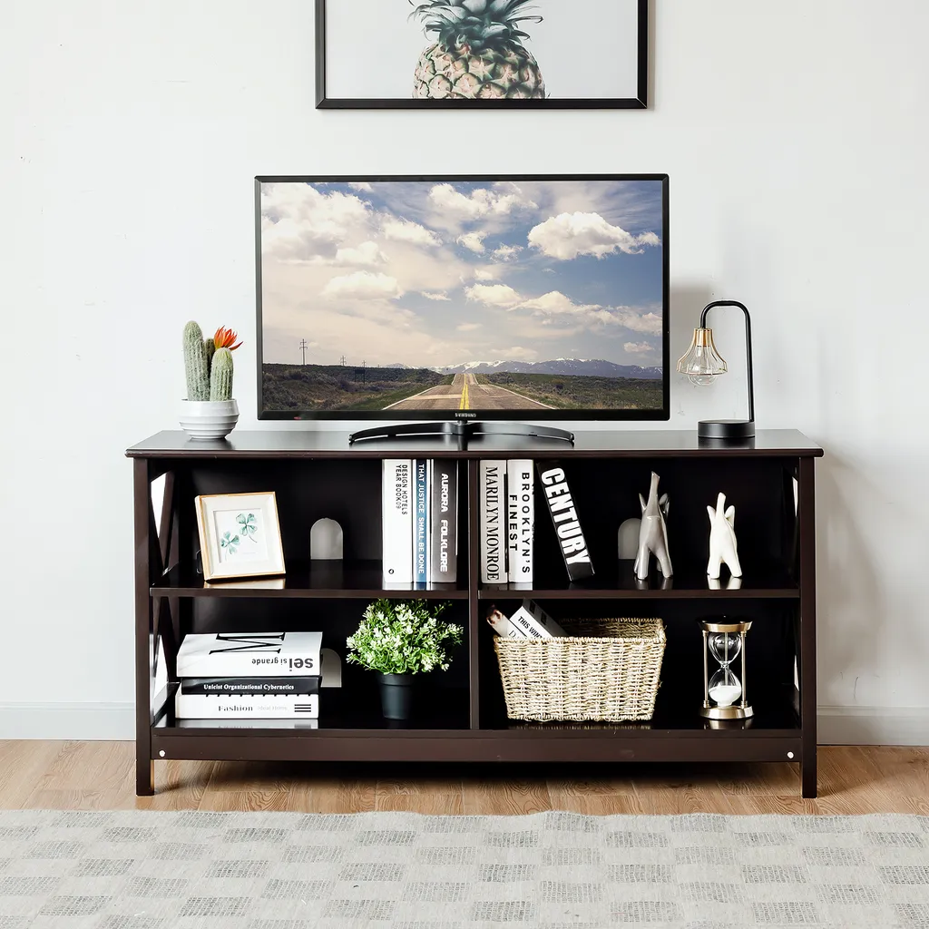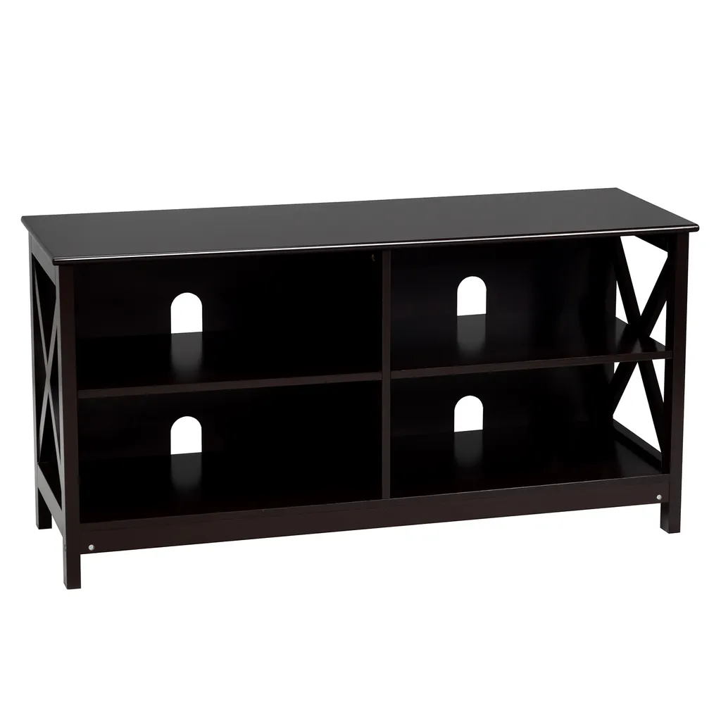 Unser TV-Ständer bietet viel Stauraum. Auf seiner großen Oberfläche haben sogar 55 Zoll Fernseher Platz. Die vier offenen Regale können zudem für Bücher, DVD-Player, Spielekonsolen, etc. genutzt werden.