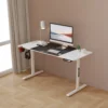 Der Schreibtisch ist aus hochwertigen Materialien gefertigt und verfügt über eine kratzfeste, wasserfeste und leicht zu reinigende Tischplatte. Er ist mit einer stabilen Metallkonstruktion ausgestattet, die eine maximale Belastbarkeit von bis zu 100 kg ermöglicht.