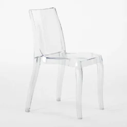 Die Transparentstuhlkollektion von Grand Soleil, die Cristal Light Reihe, ist eine der am besten geeigneten italienischen Lösungen, um jede Art von Innen- oder Außenumgebung geschmackvoll zu gestalten. Der Stuhl ist komplett aus hochwertigem Polycarbonat gefertigt, das nicht nur ein hohes Maß an Leichtigkeit, sondern auch eine ausgezeichnete Robustheit und eine gute Beständigkeit im Laufe der Zeit bietet. Darüber hinaus ist er für den professionellen Gebrauch laut Contract zugelassen und erfüllt voll und ganz die Anforderungen, die typischerweise für öffentliche Einrichtungen und den Ho.Re.Ca-Sektor gelten. Dank des italienischen Designs „sehen-nicht-sehen“ passt er sich problemlos jedem modernen oder klassischen Retro-Stil an, was Salons, Küchen, Büros, Veranstaltungsräume oder Speisezimmer betrifft, ohne dass der Komfort darunter leiden muss. Der großzügige Sitz ist angenehm bequem sowie der ergonomische Rücken, beide extra dafür konzipiert, um ein volles Entspannungserlebnis während Treffen zu ermöglichen. Der Cristal Light Transparentstuhl kann auch in mehrere Einheiten gestapelt werden, sodass mehrere Stühle übereinander gestellt und beim Umorganisieren und Anordnen in Anspruch genommen werden können. Faszinierend, bequem und für unterschiedliche Anlässe geeignet, dank der verfügbaren Farbpalette können Sie Ihr Zuhause oder Ihr Geschäft nach Ihrem Geschmack gestalten und gleichzeitig einen Farbtupfer in Ihre Räume bringen, indem Sie den Cristal Light Transparentstuhl mit Tischen jeglicher Art kombinieren.