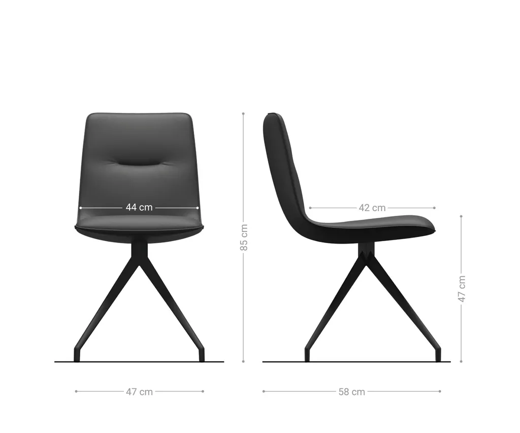 Für einen besonders stylishen Look sorgt das Kreuzgestell mit konischen Füßen aus pulverbeschichtetem, schwarzem Metall.