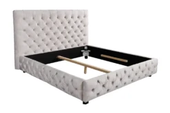 Der helle Stoffbezug aus Samt verleiht dem Bett zusätzliche Eleganz und ist besonders pflegeleicht. Ob im Schlafzimmer oder Deinem Gästebereich – das Polsterbett wird immer für einen erholsamen Schlaf sorgen. Das Bett verfügt über einen stabilen Mittelbalken, sodass Du auch zwei Lattenroste nebeneinander platzieren kannst. Unser Interior-Tipp: Kombiniere das Doppelbett mit einem kuscheligen Hochflor-Teppich und kreiere ein gemütliches Ambiente!