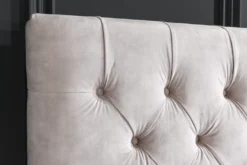 Das Doppelbett PARIS vereint Design und Funktionalität: Während das gesamte Bettgestell mit einem edlen Samtbezug bezogen und zusätzlich versteppt ist, verfügt es über eine ausladend hohe Rückenlehne, die zum Verweilen einlädt. Die dekorativen Zierknöpfe verleihen dem Bett den charismatischen Chesterfield Stil, der weltweit für seine elegante Ausstrahlung bekannt ist.