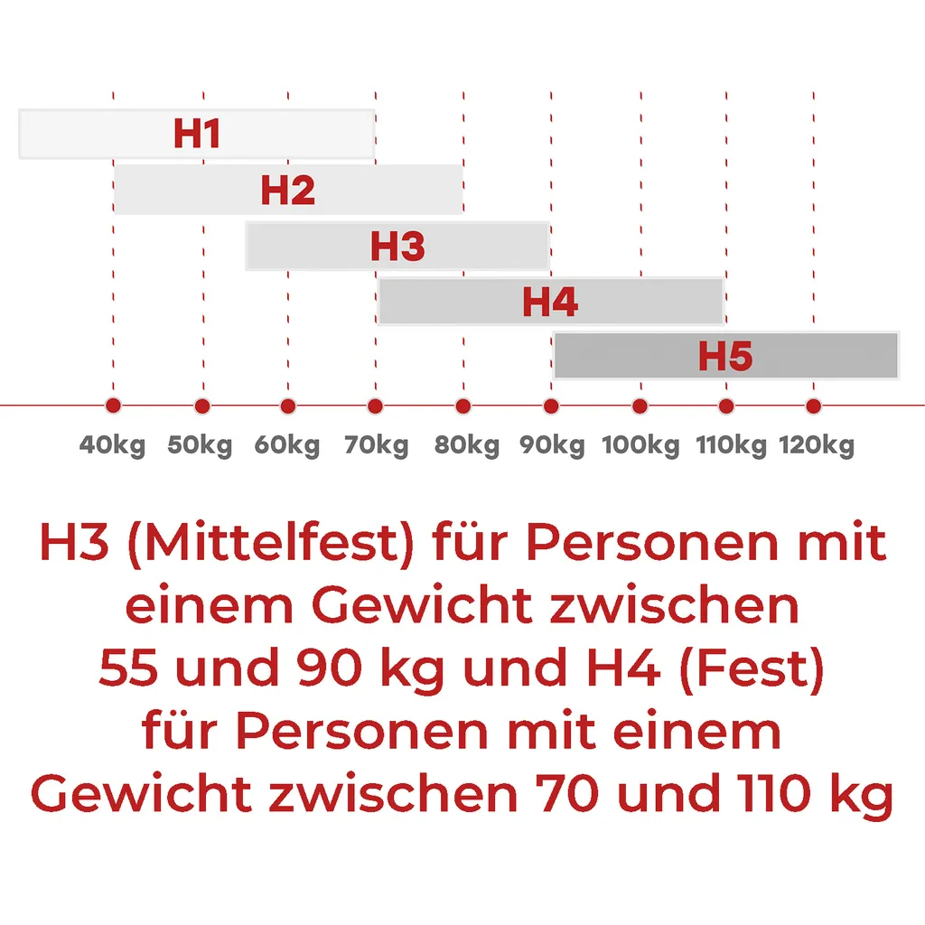 Hinweis: Die Standardhöhe der Matratze beträgt 17 cm. Die Höhe kann jedoch je nach Spezifikation und Kombination der Fülltypen variieren.