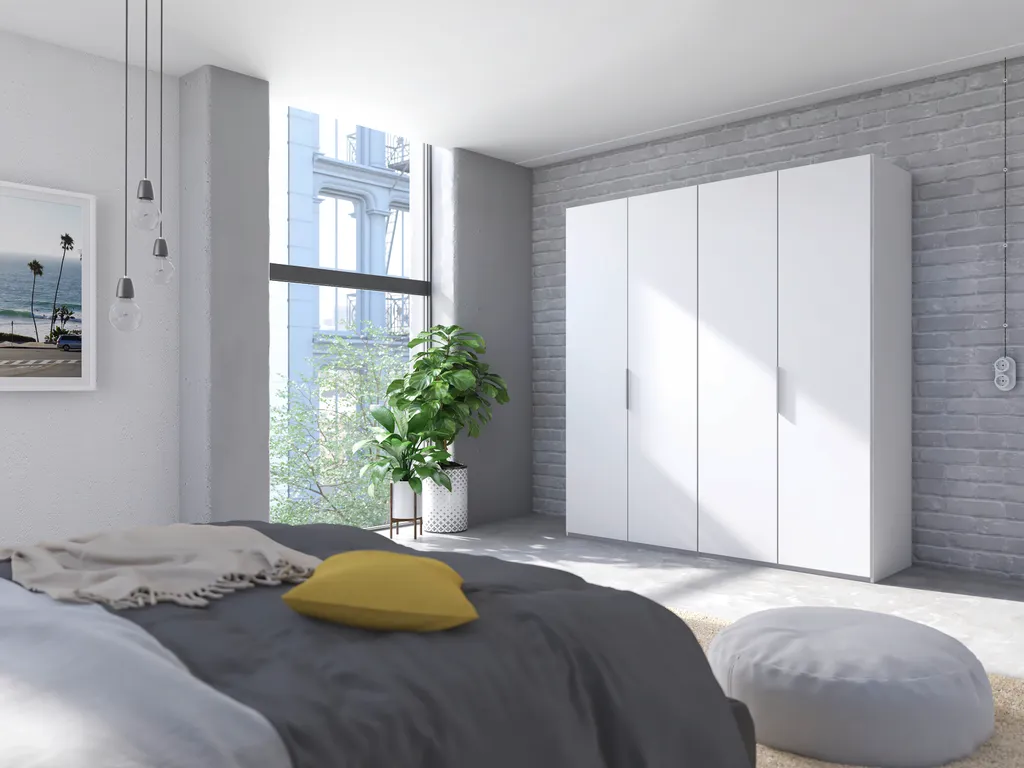 Mit Express Schränken von Nolte Möbel setzen Sie immer einen edlen Akzent. Dieser funktional konzipierte und nachhaltig gefertigte Drehtürenschrank aus der Schnellliefer-Serie Swift ist ausgestattet mit 4 Drehtür mit Soft-Close in der Farbausführung Polarweiß, die Korpusfarbe ist Polarweiß mit einem Innendekor in Silbergrau. Die handlichen Metall-Griffleisten (kurz) sind in der Farbe Aluminium gehalten. Sie erhalten diesen Schrank in der Höhe 216cm, Breite 200cm, und Tiefe 58cm in einer Aufteilung auf 2 Schrankelemente mit den Maßen 100 + 100cm. Die Nutztiefe der Einlegeböden beträgt 55cm. Der Kleiderschrank bietet in der Basic-Variante folgende, funktionale Innenausstattung: 2x Einlegeboden + 2x Kleiderstange. Entdecken Sie auch unser optional erhältliches Zubehör!