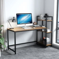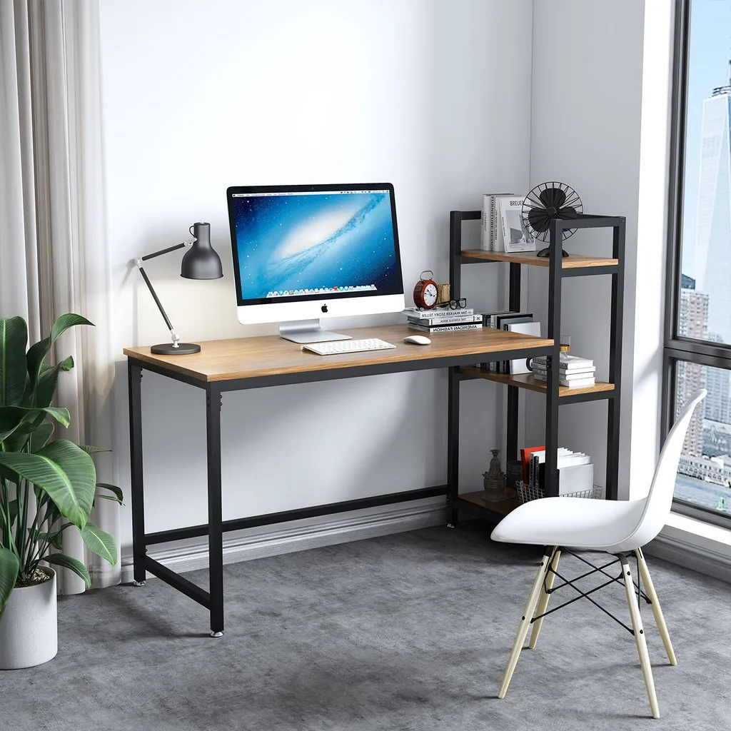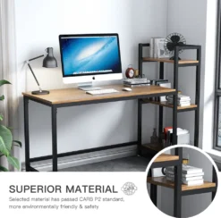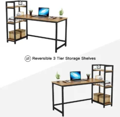 - 【Umkehrbare Lagerregale]】Dieser moderne Computertisch verfügt über ein dreistufiges Lagerregal mit viel Platz für die Aufbewahrung Ihrer Bücher, Pflanzen oder eines Druckers usw.Und Ihr Zubehör Befestigen Sie die Regale nach Bedarf links / rechts.