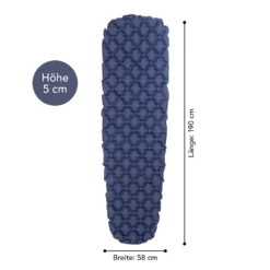 - MaĂźe (L x B x H): aufgepumpt ca. 190 x 58 x 5,5 cm