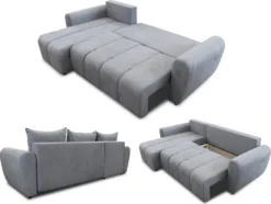 - Ausziehsystem des Typs DL – durch das Herausziehen der Sitzfläche und dem Einklappen der Rückenlehne wird die Schlaffläche erlangt