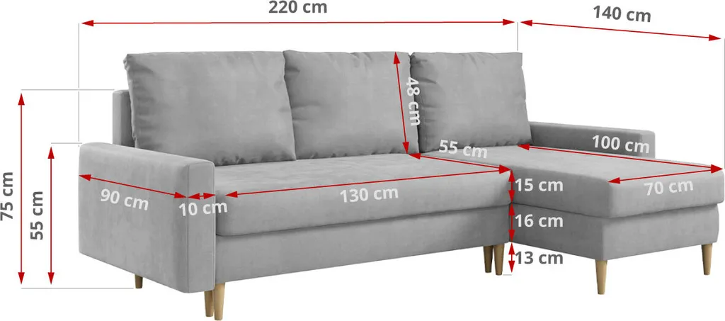 Für die Herstellung des Bettsofas wurden sehr hochwertige Materialien verwendet, wie z. B. eine 16 mm dicke Laminatplatte, eine HDF-Platte und langlebiges Holz, deren Kombination einen soliden Möbelrahmen ergibt. Die Oberfläche dieses Modells ist mit T30-Schaumstoff gefüllt und mit Bonellfedern ausgestattet, was das Bettsofa ASTRA zu einem sehr bequemen Möbelstück macht. Die Seiten des Sofas werden mit Schrauben befestigt.