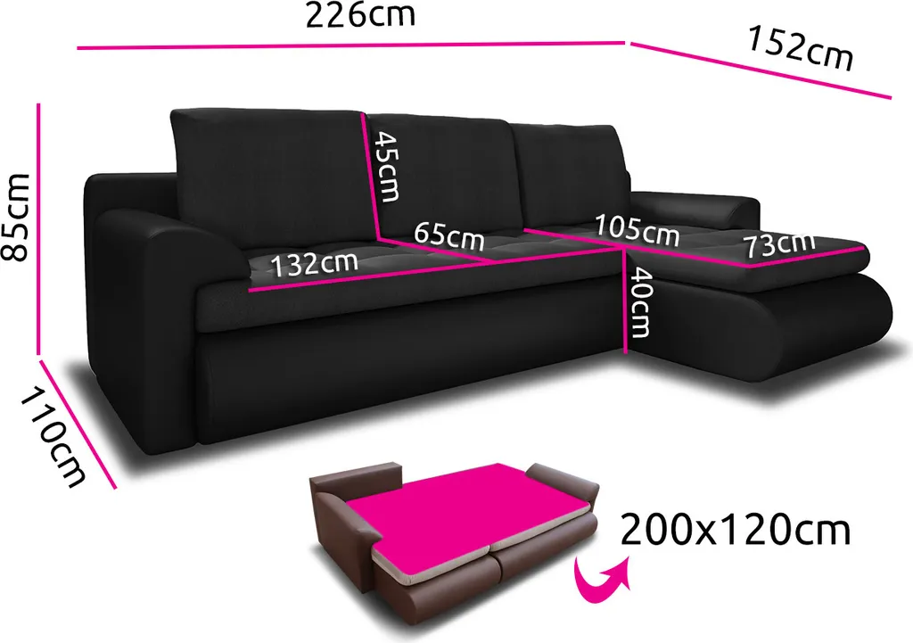 - Ausziehsystem des Typs DL – durch das Herausziehen der Sitzfläche und dem Einklappen der Rückenlehne wird die Schlaffläche erlangt