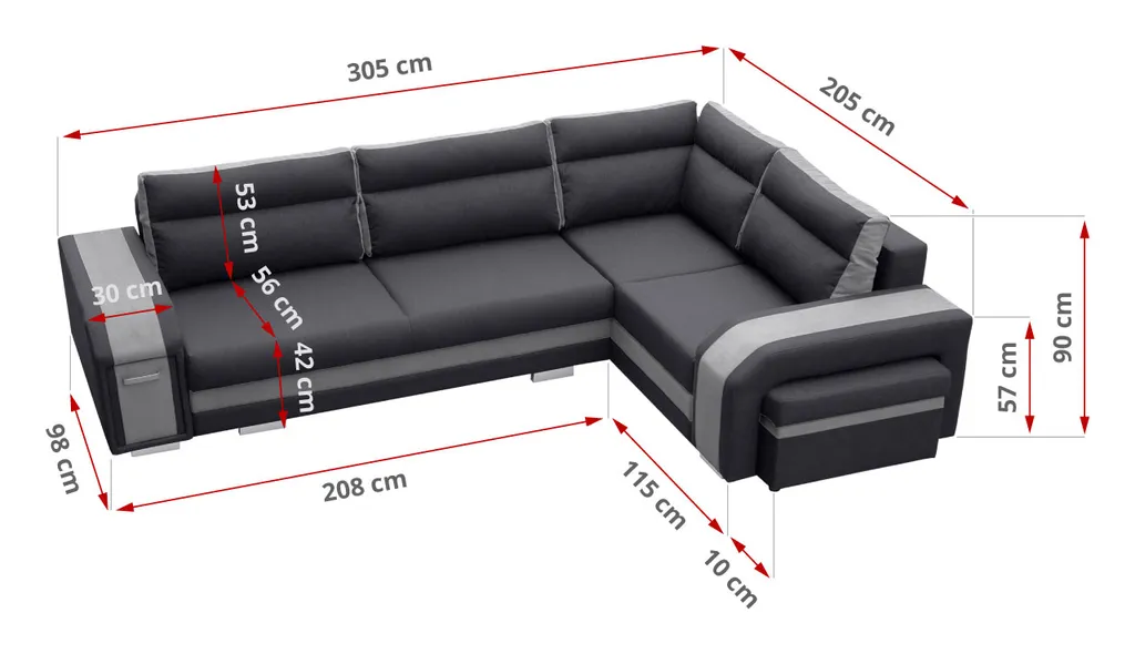 Bequem und praktisch. Das freistehende Ecksofa ist ein Möbelstück, für dessen Herstellung die hochwertigsten Materialien verwendet wurden. Dadurch bietet das Sofa ein Maximum an Bequemlichkeit und Komfort in Ihrem Wohnzimmer. Es ist eine perfekte Lösung für jede Wohnung. Das L-förmige Ecksofa eignet sich auch perfekt als Möbelstück für die ganze Familie, wo jeder einen Platz für sich findet!
