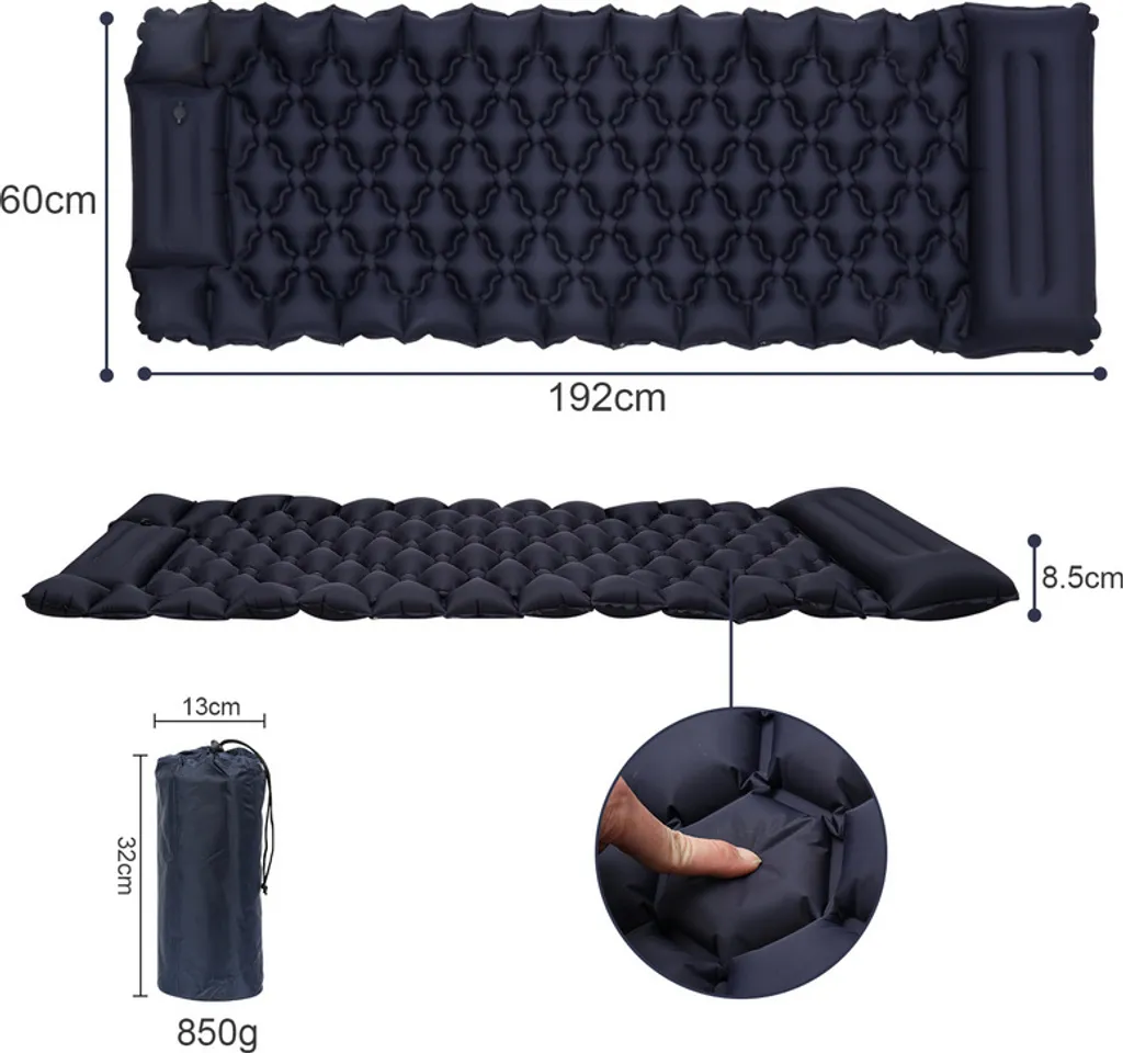Diese aufblasbare Unterlage eignet sich hervorragend für Camping, Autoreisen, Motorradtouren und Wanderungen oder um die zusätzliche Schlafzeit zu Hause oder im Büro zu genießen.