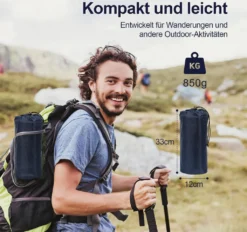 Kompakt und Leicht:Geben Sie sich die leichteste Schlafmatte Isomatten, ohne auf Komfort zu verzichten.Verpacken Sie sie einfach auf die Größe einer dünnen Wasserflasche! Sie müssen kein Kissen zu unserem dazugehörigen Kissen einpacken! Immer GENUG Raum! Ein