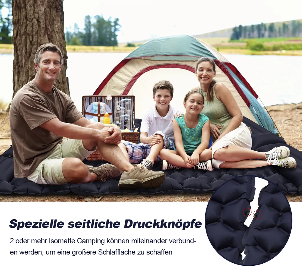Verbessertes Aufblasventil:Camping Isomatte Stempel auf dem Schlafkissen, um es in einer Minute vollständig aufzublasen, was 40%-50% Aufblaszeit spart, Durch den getrennten Lufteinlass und -auslass bietet unsere Isomatte eine bessere Dichtigkeit;Mit