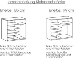Kleiderschrank groß mit Spiegel: 179 x 64 x 198 cm (BxTxH)