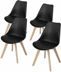 4 Stück-Esszimmerstühle – Esszimmerstuhl – Schalenstuhl – Gestell aus Buchenholz – Schwarz