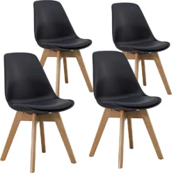 4 Stück-Esszimmerstühle – Esszimmerstuhl – Schalenstuhl – Gestell aus Buchenholz – Schwarz