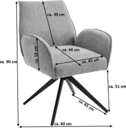 Drehbarer Stuhl – Highlight des Stuhls ist das Vierfuß-Gestell, welches dem Stuhl eine Drehbarkeit um 180° ermöglicht. Dieser charmante Armlehnstuhl im skandinavischen Design ist eine Bereicherung, ob als Esszimmerstuhl oder einfach als Einzelstück am Schreibtisch.