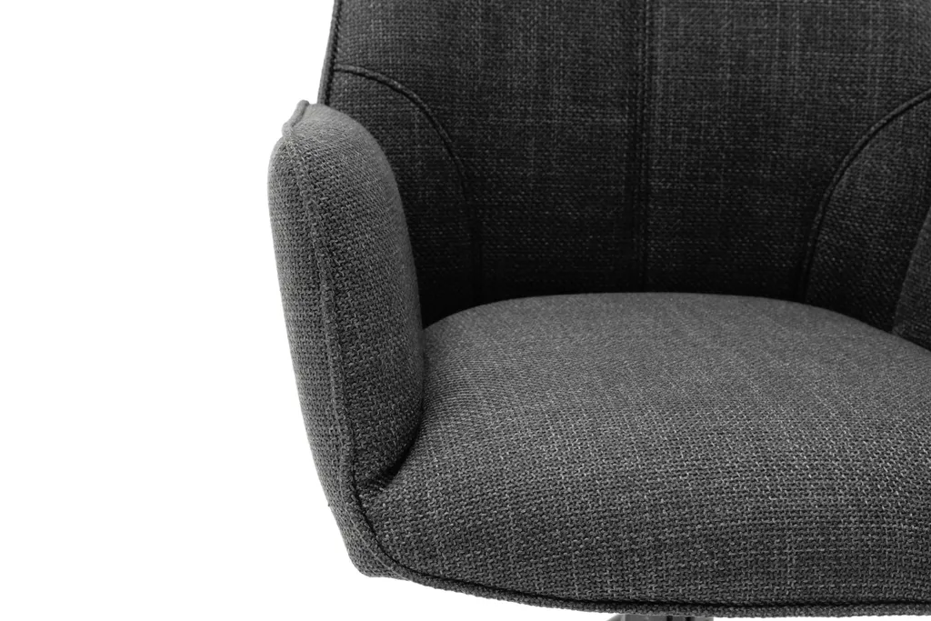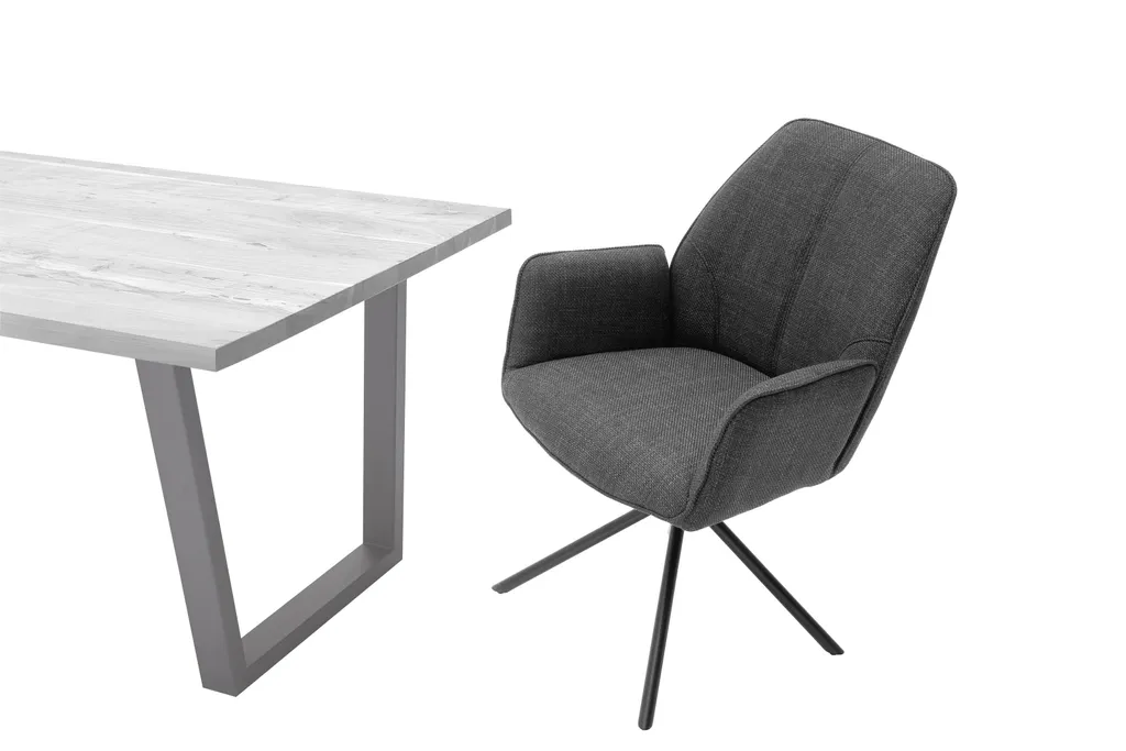 Die Sitzfläche des „Pettau II“ ist hier in Anthrazit erhältlich. Kombiniert wird diese mit einem Schwarz matt lackierten Metallgestell, welches dem Esszimmerstuhl eine besonders elegante Ausstrahlung verleiht.