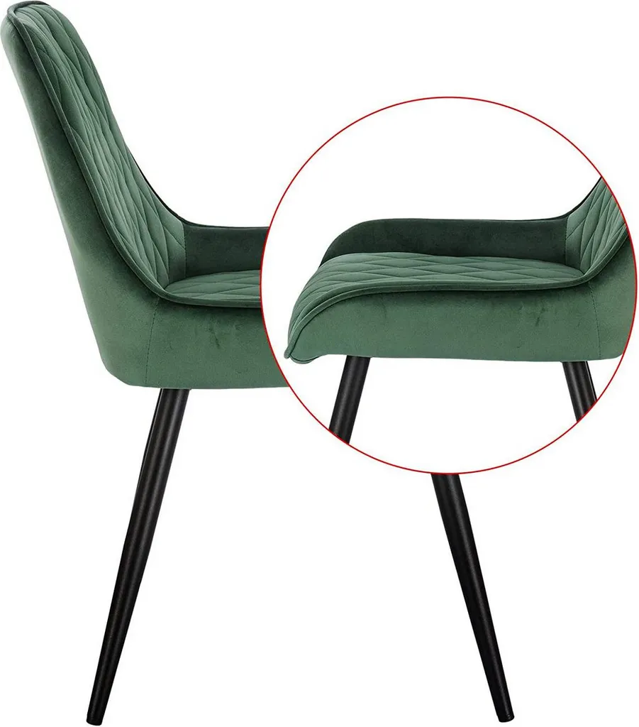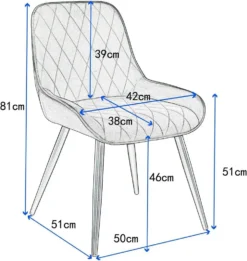 - Hochwertige Materialien: Die Beine des Esszimmerstuhls sind aus sehr stabilem Stahl versichert. Die Sitzfläche aus Samt bietet Komfort an.