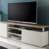 Windoxa Maxi Fernsehtisch mit Glasfuss Silberfarbig, Schwarzglas.