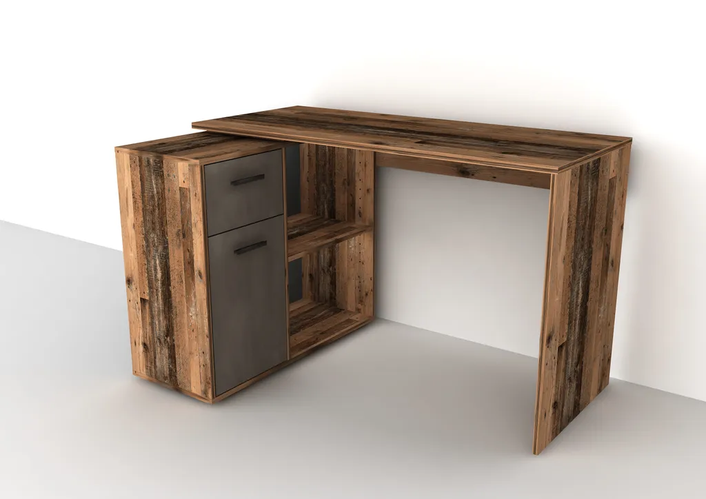 – 1x FMD furniture 360-001 Schreibtisch-Winkelkombination in Ausführung Old Style dunkel/Stahl dunkel