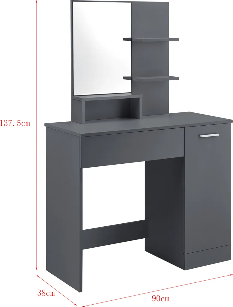 Der Schminktisch mit Spiegel eignet sich ideal zum schick machen für den Tag oder abends für eine Feier oder einen Diskobesuch. Die Schublade, der Schrank und die Ablagen bieten zusätzlich einen perfekten Stauraum für Ihre Schminkutensilien.