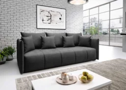 Der unglaublich komfortable 3-Sitzer fügt sich harmonisch in die jede Wohnzimmereinrichtung ein und ist perfekt dazu geeignet, um mit Familie oder Freunden gemeinsam Zeit zu verbringen, zu fernsehen, zu plaudern oder einfach nur Spaß zu haben. Dank der Schlaffunktion kann die Couch im Handumdrehen in ein bequemes Gästebett verwandelt werden und sorgt für ein gemütliches Ambiente. Im Bettkasten können Sie die Bettwäsche, Kissen oder Tagesdecken verstauen, damit Ihr Wohnzimmer immer aufgeräumt für den Gästeempfang aussieht.