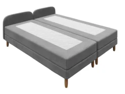 Auf dem stabilen Bettrahmen aus Kieferholz befindet sich eine Bonell-Federung, auf der der eine mittelharte H2-Matratzen aus hochelastischen Polyurethanschaum T3042 liegt. Das niedrige Kopfteil verhindert, dass die Kissen auf dem Fußboden herunterfallen und sich dahinten befindliche Wand keine Schäden davonträgt.