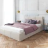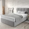 Das hohe Kopfteil verhindert, dass die Kissen auf dem Fußboden herunterfallen und die sich dahinten befindliche Wand keine Schäden oder Kratzern von Kopfkissen oder Schlafkissen trägt. Das Bett ist rundum gepolstert. Dank der rückenechten Ausführung kann das Möbelstück frei im Raum stehen. Das gepolsterte Kopfteil bietet eine komfortable Stütze beim Lesen oder Musikhören vor dem Einschlafen. Jedes Kopfteil ist kunstvoll gesteppt und mit Ziernähten versehen. Die wunderschöne Optik sorgt für ein heimeliges Gefühl im Schlafzimmer und hilft, den Tag gemütlich ausklingen.
