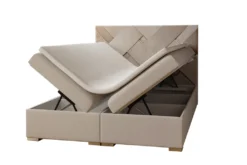 Das gepolsterte, große Boxspringbett ist für 2 Personen geeignet. Die zwei praktischen Bettkästen werden mithilfe eines voneinander unabhängigen, automatischen Hebesystems mit Gasdruckfedern angehoben. Jeder Bettkasten ist innen in 3 Kammern unterteilt, was für Ordnung sorgt und hilft, die Bettwäsche, Kissen oder Decken knitterfrei aufzubewahren.