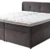 Das Boxspringbett ist standardmäßig mit einer Bonellmatratze mit Schaumstoff T25 ausgestatten. Jedes Bett wird mit einem 4 cm dickem Topper, ebenfalls aus T28-Schaumstoff, geliefert, der auf die Abmessungen des Bettes abgestimmt ist. Der Topper erhöht den Liegekomfort und nivelliert die lästige Besucherritze inmitten des Bettes.