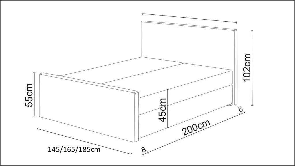 – Verfügbare Größen: 140 x 200 cm, 160 x 200 cm, 180 x 200 cm, 200 x 200 cm