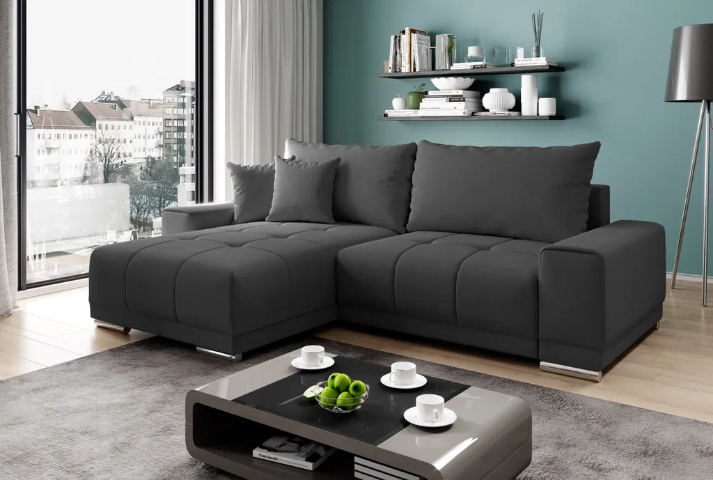 Die elegante Eckcouch in L-Form mit Schlaffunktion ist die ideale Lösung für ein Wohnzimmer oder ein größeres Apartment.
