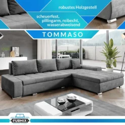 Die gemütliche Wohnzimmersofa ist perfekt dazu geeignet, um mit Familie oder Freunden gemeinsam Zeit zu verbringen, zu fernsehen, zu plaudern oder einfach nur Spaß zu haben. Die hochelastische Polsterung bietet einen außergewöhnlichen Sitz- und Liegekomfort für die ganze Familie. Für mehr Ordnung ist die elegante Polstercouch mit einem praktischen Bettkasten zur Aufbewahrung von Bettwäsche oder Decken ausgestattet.