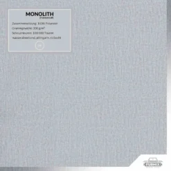Der verwendete Polsterstoff Monolith aus robustem 100 % Polyester 330 g/m2 ist wasserabweisend, scheuerfest (100.000 Martindale-Zyklen), pillingarm (4-5) und reibecht (trocken 5, nass 3-4). Die spezielle Schutzschicht erzeugt einen Lotus-Effekt, so dass die verschütteten Flüssigkeiten Tropfen bilden, auf der Oberfläche bleiben und nicht in die Polsterung endringen können. So haben Sie genug Zeit, verschüttete Flüssigkeiten mit einem weichen Tuch oder vorsichtig abzutupfen.