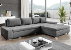 Die gemütliche Wohnzimmersofa ist perfekt dazu geeignet, um mit Familie oder Freunden gemeinsam Zeit zu verbringen, zu fernsehen, zu plaudern oder einfach nur Spaß zu haben. Die hochelastische Polsterung bietet einen außergewöhnlichen Sitz- und Liegekomfort für die ganze Familie. Für mehr Ordnung ist die elegante Polstercouch mit einem praktischen Bettkasten zur Aufbewahrung von Bettwäsche oder Decken ausgestattet.