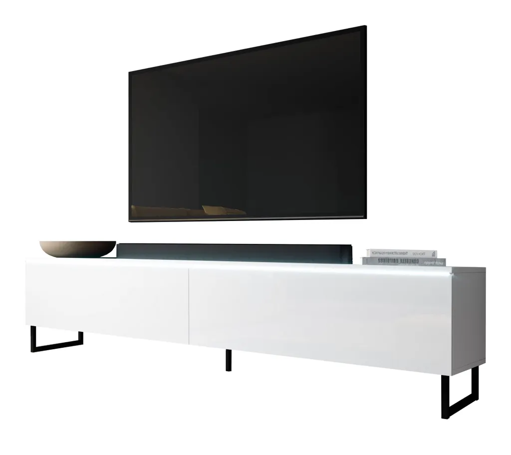 Der elegante TV-Schrank ist optimal für Wohnzimmer oder Jugendzimmer geeignet. Sein modernes Design und minimalistische Optik fügen sich optimal in bestehende Wohnungseinrichtung ein. Zwei Ablagen (je B87,6 x H315 x 28,6 cm) mit einer „Push-Click“-Tür bieten viel Stauraum für DVDs und Zeitschriften. Die TV-Kommode bietet ausreichende Stellfläche für mittelgroße und große Fernsehgeräte.