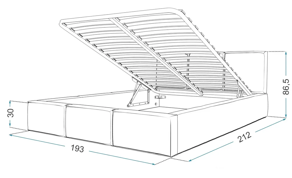 - Bettabmessungen: 193 x 212 x 86,5 cm