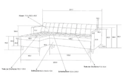 – Abmessungen: B220 x H68/86 x T154 cm (ohne/mit RĂĽckenkissen)