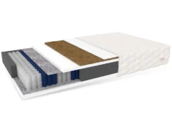 Die 18 cm hohe Pocketfeder-Matratze ist sehr universal. Dank der zwei Härtegrade H3 und H4 ist sie für Personen mit unterschiedlichen Schlafbedürfnissen und Körpergewicht optimal geeignet. Die 12 cm hohen, unabhängig voneinander arbeitenden Federn, die sich oben und unten befindliche Schicht aus hochelastischem Polyurethan-Schaumstoff T-25 und Matten aus Kokosfasern sorgen für eine ergonomische Körperhaltung während des Schlafens, stützten sie die Wirbelsäule und lassen Sie hervorragend ausgeruht und voller Energie aufwachen. Der gesteppte Bezug wurde aus 100 % Polyester gefertigt. Dank eines Reißverschlusses ist er abnehmbar und bei 30 °C in der Waschmaschine waschbar.
