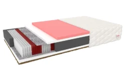 Die 22 cm hohe Pocketfeder-Matratze ist sehr universal. Dank der zwei Härtegrade H3 (mittelhartI und H5 (sehr hart) ist sie für Personen mit sehr unterschiedlichen Schlafbedürfnissen und Körpergewicht optimal geeignet. Die H3-Matratzenseite ist mit einer 4 cm dicken Schicht thermoplastischen VISCO-Schaum und 2 cm dicker hochelastischen PolyurethanSchaum T-25 ausgelegt, während sich auf der H5-Matratzenseite die Kokosfasermatte (1 cm) und PolyurethanSchaum T25 (2 cm) befinden.