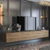 Robuste Ausführung: Das TV-Lowboard wurde aus dicken Möbelplatten hergestellt und wiegt 29,5 kg. Alle Oberflächen sind sorgfältig laminiert und lassen sich leicht mit einem Staubtuch oder einem feuchten Tuch abwischen.