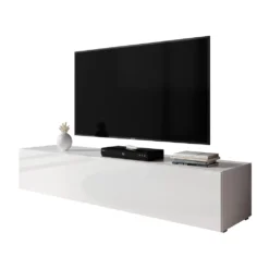 Der elegante TV-Schrank verbindet elegante Linienführung mit zeitloser Funktionalität und punktet mit minimalistischem Aussehen, das von den top aktuellen Trends in der Innenraumeinrichtung inspiriert wurde. Die Fernsehkommode sorgt für ein aufgeräumtes Raumambiente und bietet viel Stauraum für Multimediageräte, DVDs, CDs oder Zeitschriften.