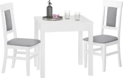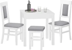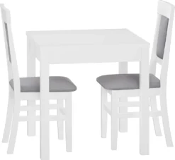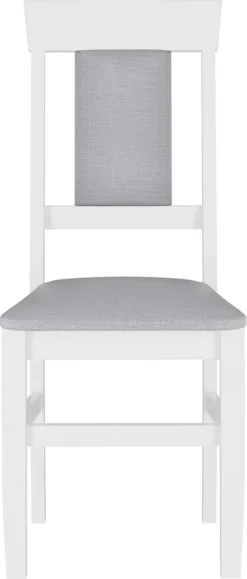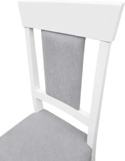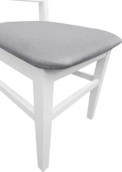 Das Holzgestell für den Küchenstuhl ist waschweiß (Lichteinfall kann die Oberflächenfarbe von Massivholz verändern) lackiert.