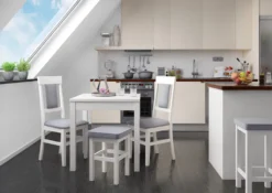 Ein moderner und bequemer Esszimmerstuhl aus massivem Kiefernholz, der sich ideal jedem Wohnstil anpasst.