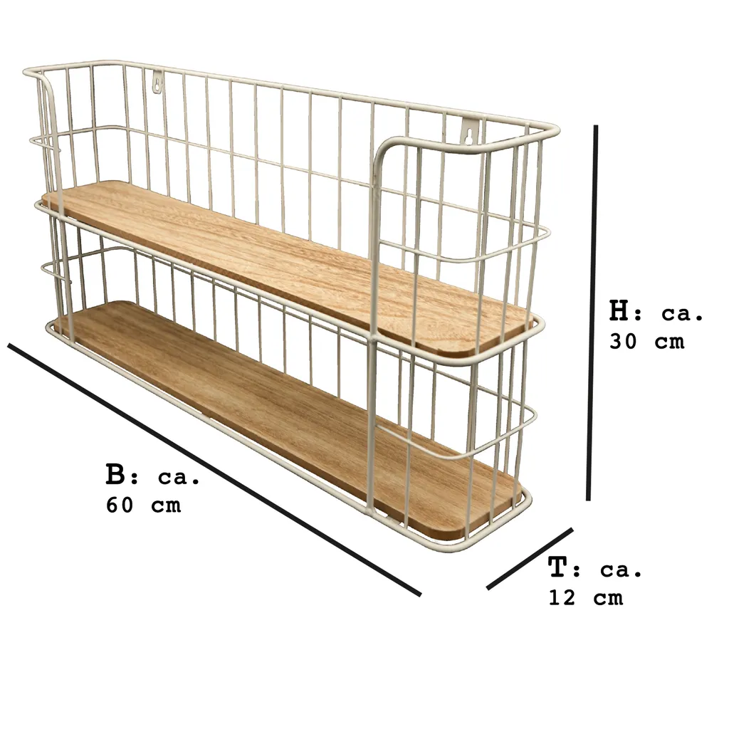 Das Wandregal kommt in den Maßen L x B x H 60 x 12 x 30 cm und besteht aus Holz und Metall.