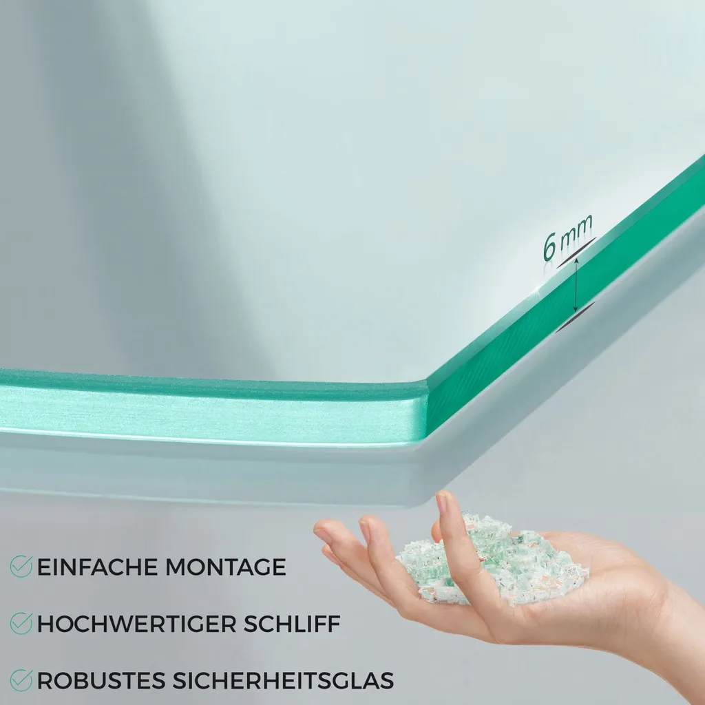 - GESCHLIFFENE GLASKANTEN & ECKEN – die Kanten und Ecken des Regals sind komplett umlaufend geschliffen und poliert, was fĂĽr eine edle Optik sorgt