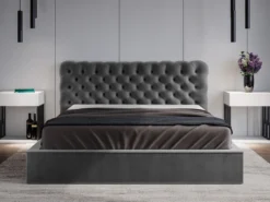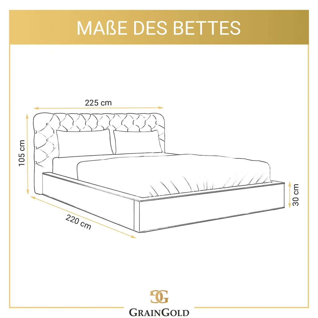 Das Velour Bett Apollo ist die perfekte Wahl für Menschen, die einen eleganten Stil lieben. Es hat ein hohes, gestepptes Kopfteil, das mit hochwertigem Samtvelours bezogen ist. Das Polsterbett Apollo ist vom Barockstil inspiriert und mit zahlreichen Ornamenten und Accessoires versehen. Die tief gesteppten Knöpfe verleihen ihm zusätzliche Eleganz.