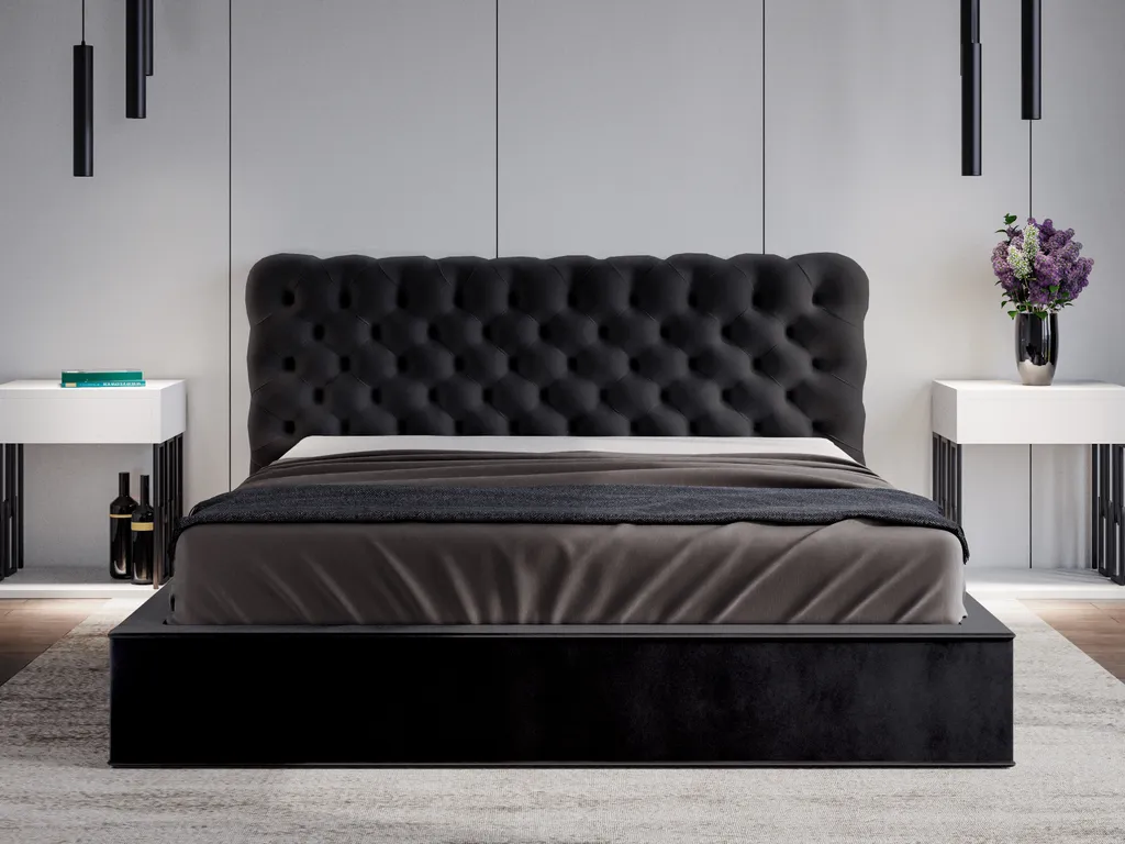 Das Velour Bett Apollo ist die perfekte Wahl für Menschen, die einen eleganten Stil lieben. Es hat ein hohes, gestepptes Kopfteil, das mit hochwertigem Samtvelours bezogen ist. Das Polsterbett Apollo ist vom Barockstil inspiriert und mit zahlreichen Ornamenten und Accessoires versehen. Die tief gesteppten Knöpfe verleihen ihm zusätzliche Eleganz.